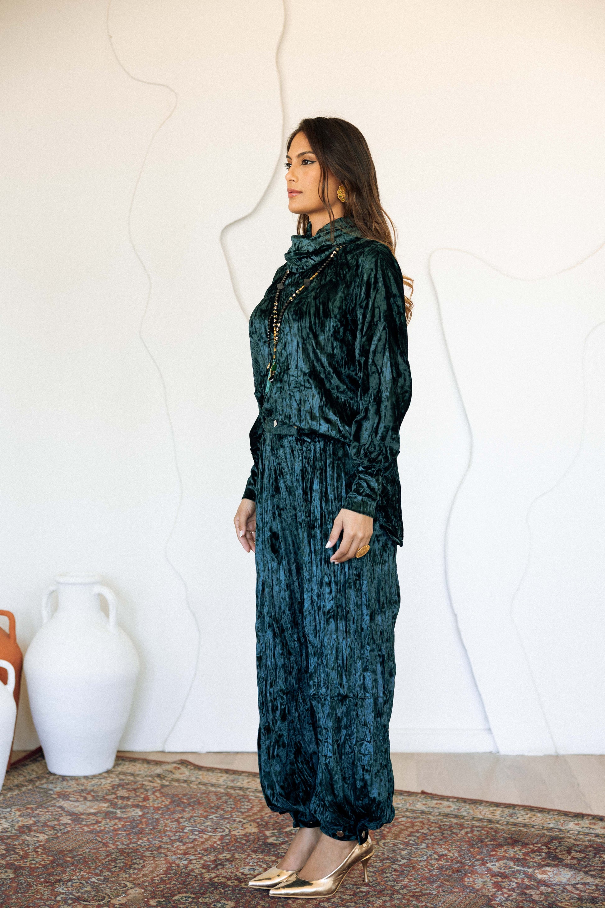 CRINKLED VELVET SET - EMERALD GREEN