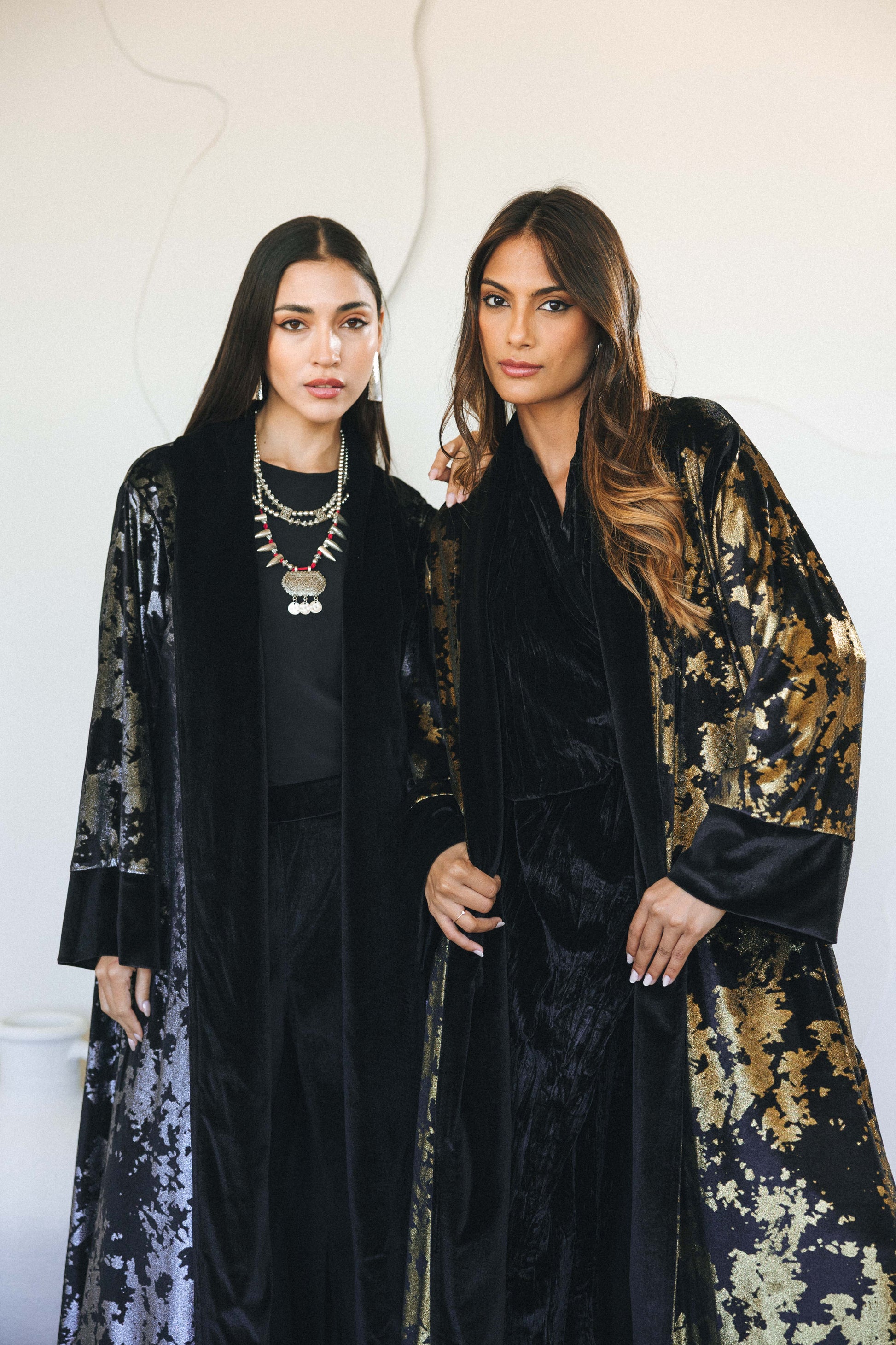A statement of modern elegance, this flowing cardigan features a rich velvet textured finish layered over a fluid silhouette. Designed with soft velvet trims and wide sleeves, it moves gracefully with every step. Perfect for Ramadan evenings and special occasions, it embodies timeless sophistication and effortless luxury.