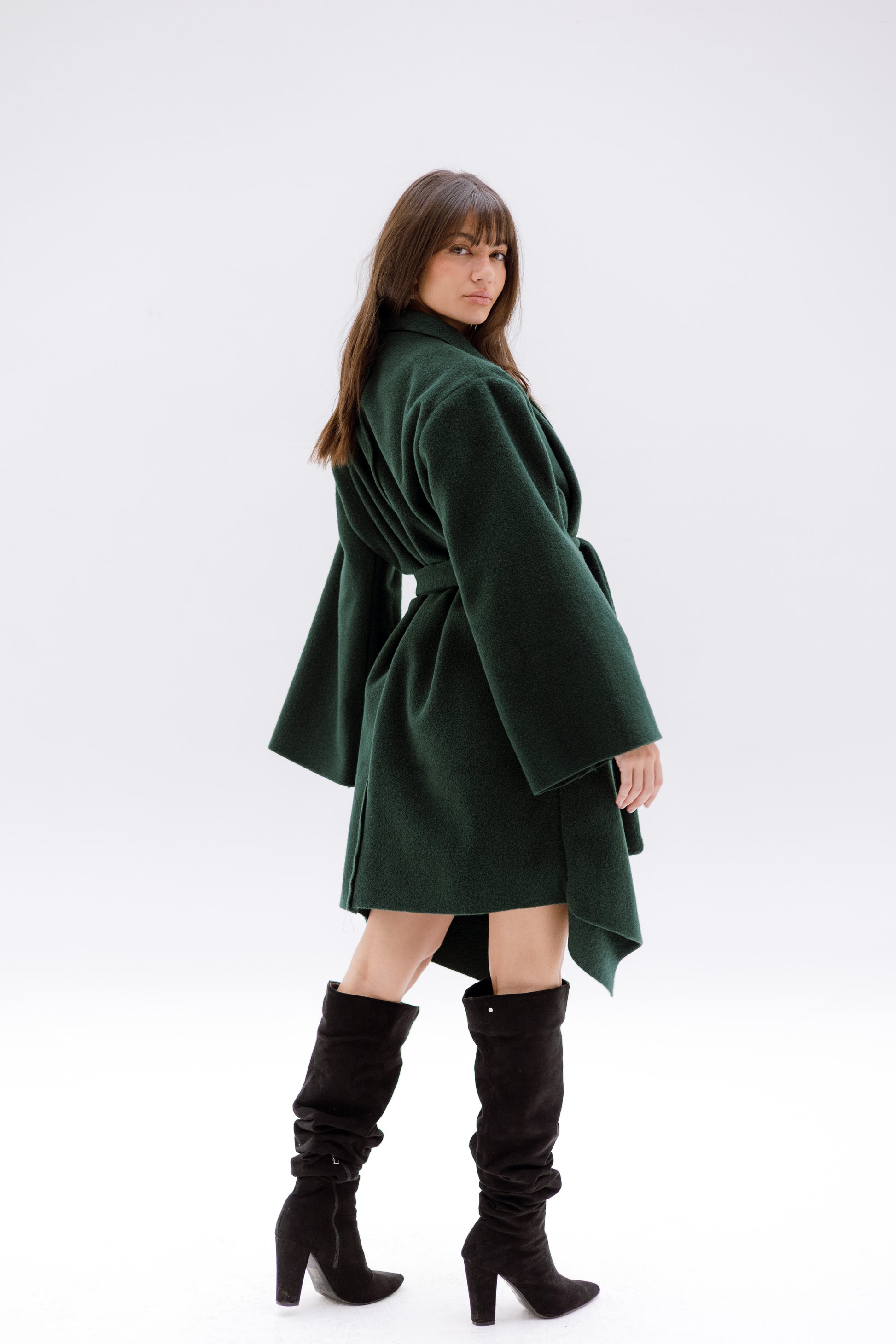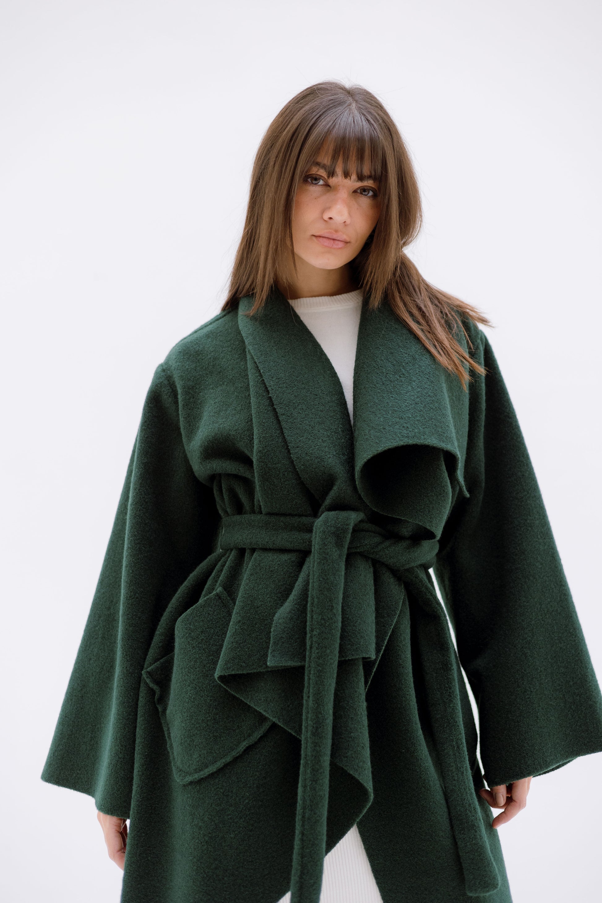 The VELA Wrap Coat blends plush wool muhair with a fluid wrap silhouette for a warm, weightless winter look Soft. Calm. Effortless.