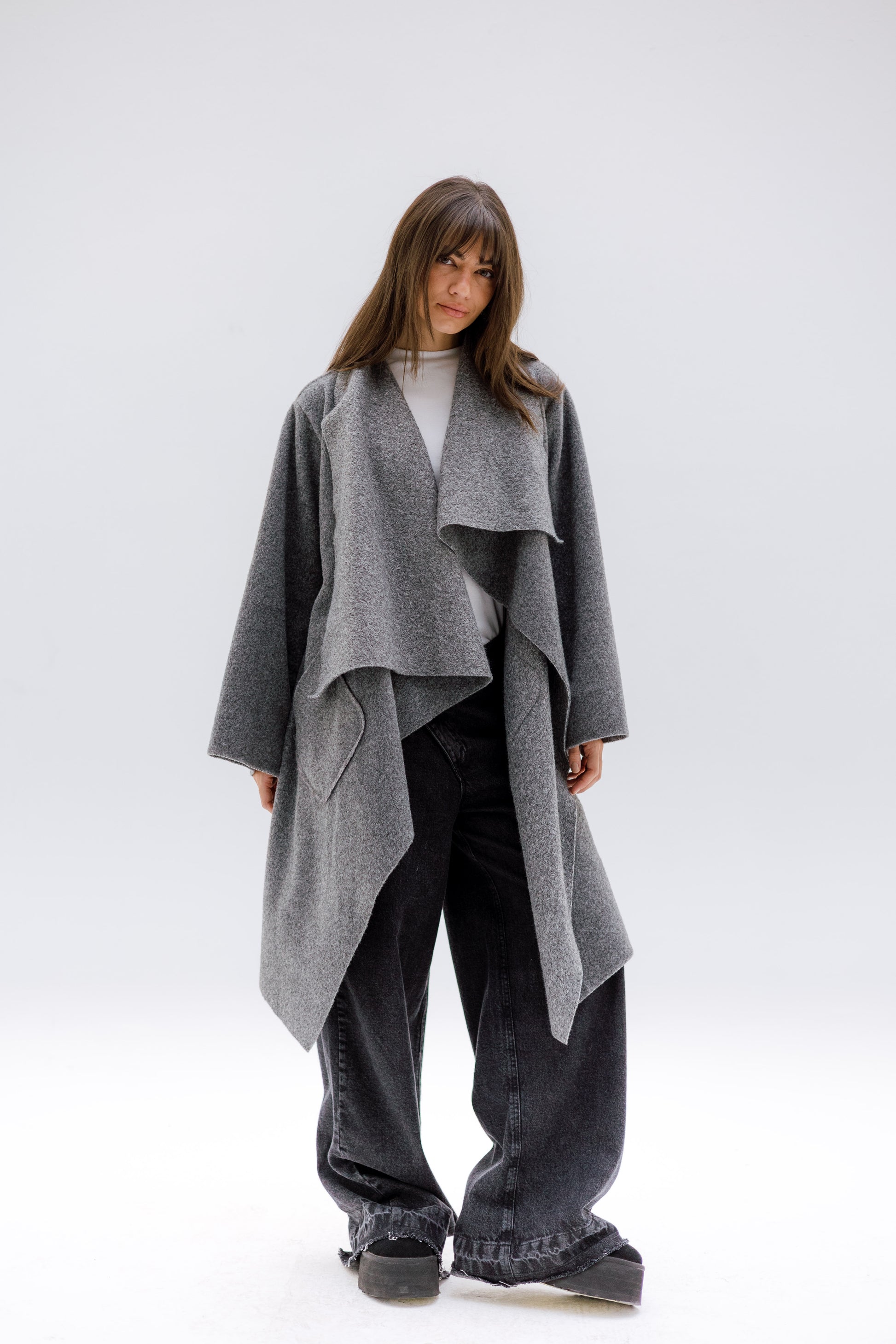 The VELA Wrap Coat blends plush wool muhair with a fluid wrap silhouette for a warm, weightless winter look Soft. Calm. Effortless.