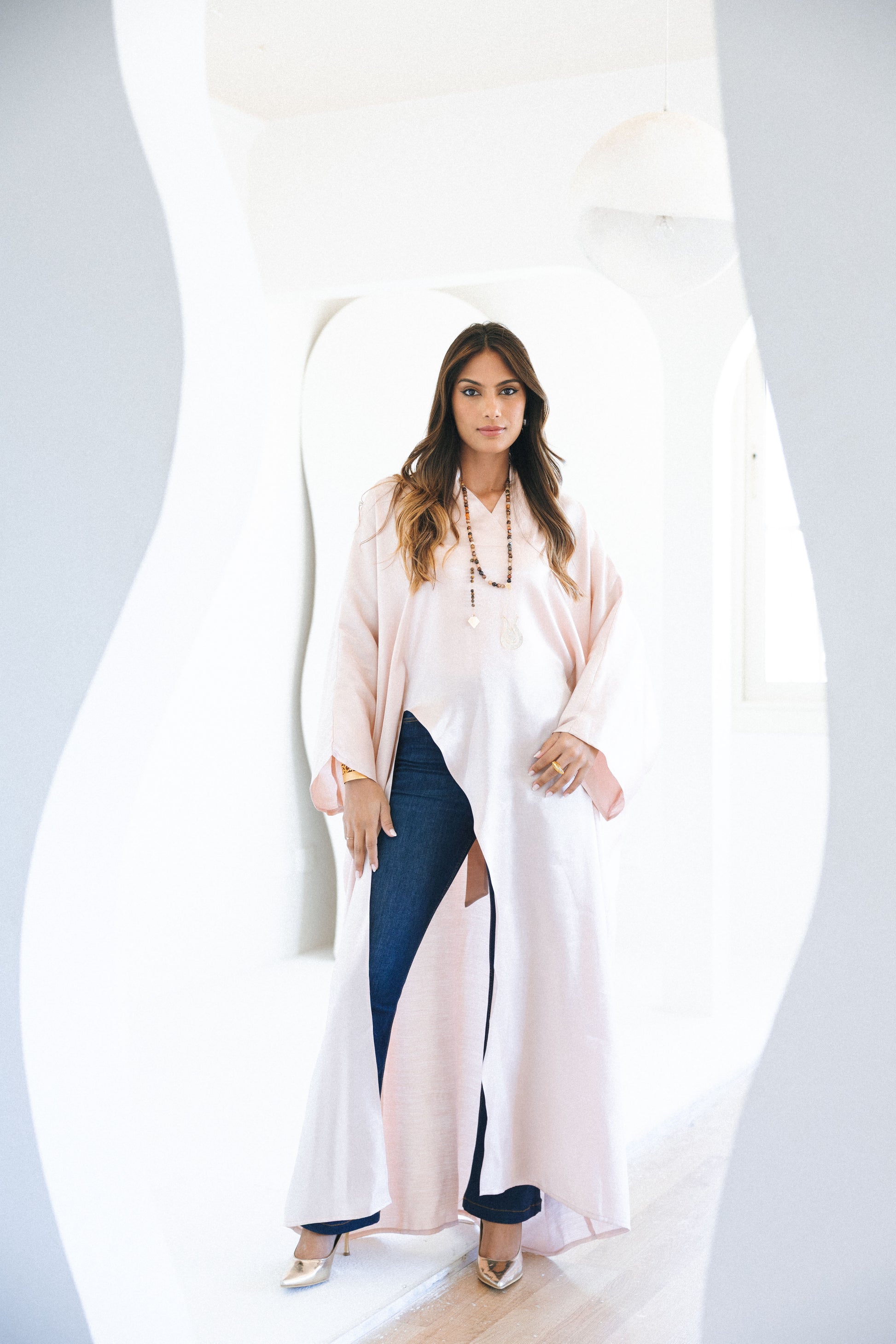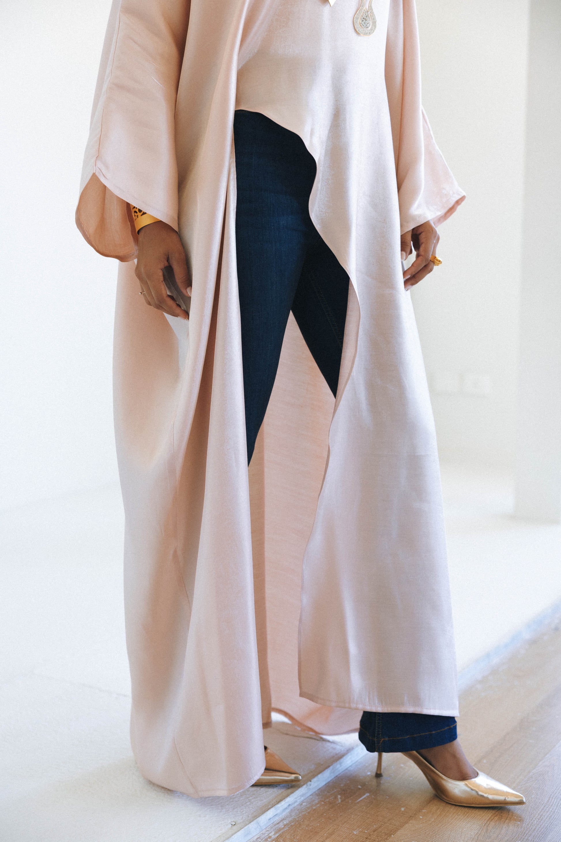 A fluid satin-finish kaftan designed for effortless elegance. Featuring wide sleeves and a relaxed silhouette, this piece drapes beautifully with every movement. The rich colors tone adds a refined statement, ideal for elevated daywear or evening styling.