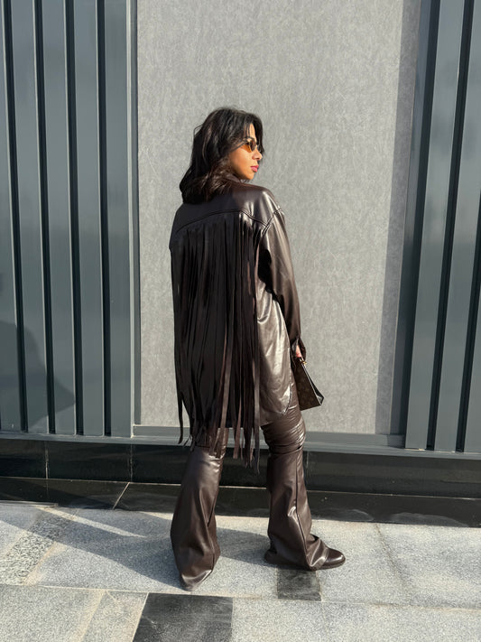 The leather fringes set - BROWN