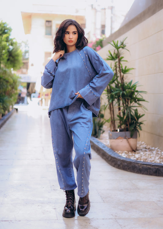 Navy blue Stone washed studs set